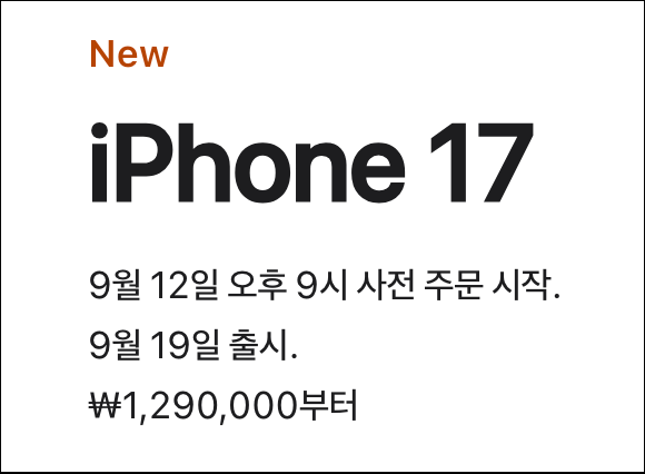 | 아이폰 17 | 256GB | 1,290,000원 |
